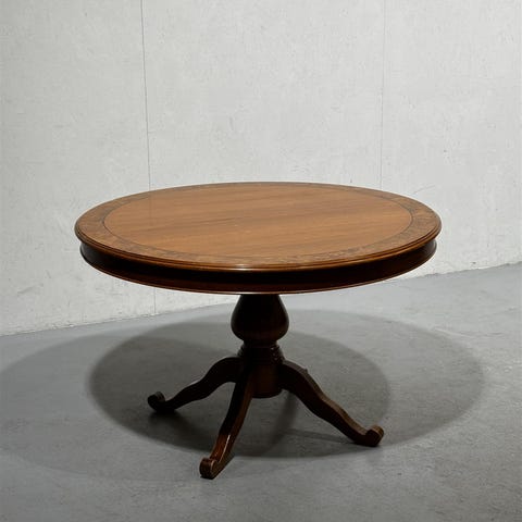 Pyöreä retro ruokapöytä, joka on maalattu valkoiseksi. Pöydän jalat ovat tukevat ja ristikkomalliset, mikä antaa sille vakautta ja kestävyyttä. Halkaisija 90cm ja korkeus hieman normaalia matalampi 68cm.