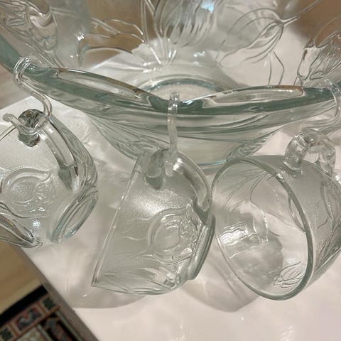 Hakusanat: boolikulho, booli, tarjoiluastiat, lasiastiat, Paketoitava, keittiötarvikkeet, kohokuvio, juhlat, hedelmäkuvio, lasi, setti, kupit, tarjoilu, astiat, kirkas, koristeellinen