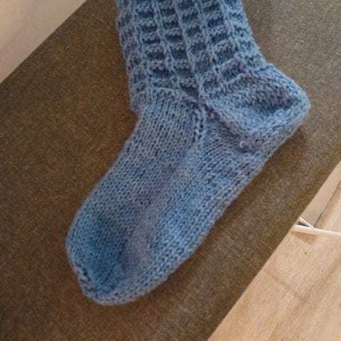 Nalle langasta neulotut-eli ohuempaa lankaa,olevat villasukat. Pohjan pituus 23cm mutta joustaa tietenkin jonkinverran