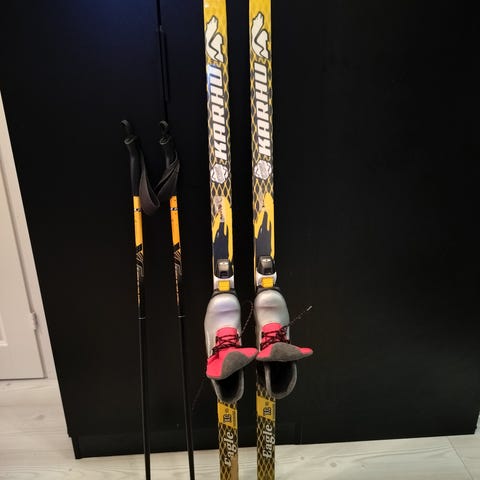 Karhun sukset 150 cm. On jo kulumaa, mutta ehjät.