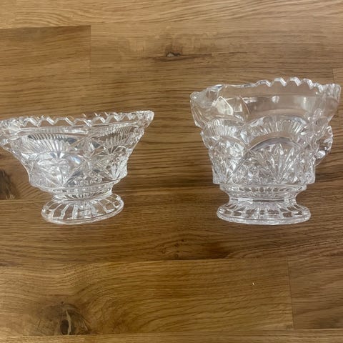 Hakusanat: astiat, kristalli, kristalliastiat, kermakot, nekat, kermanekat, sokeriastiat, sokerikot, Riihimäki, Riihimäen lasi, retro, vintage, design, Finnish design. Lähetän.