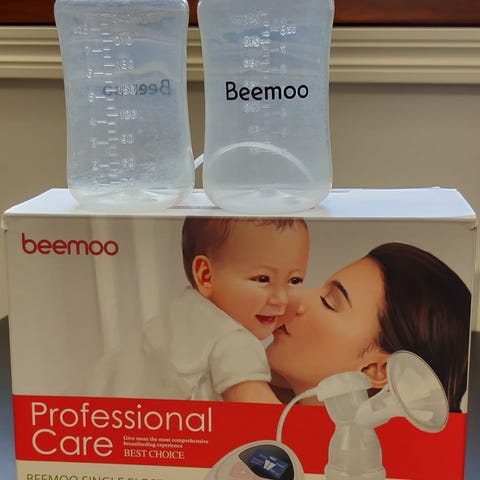 Toimiva rintapumppu. Toimii johdolla ja paristoilla. Kaupanpäälle käsikäyttöinen pumppu.