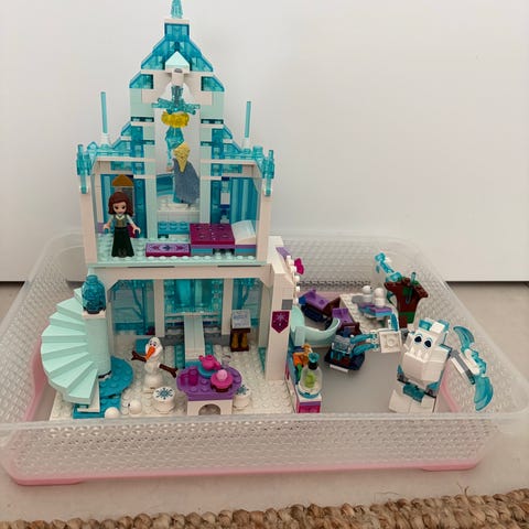 LEGO Disney Frozen II linna -rakennussarja, joka sisältää linna-rakennuksen ja siihen liittyviä osia. Jotain pientä saattaa puuttua tai on korvattu jollain vastaavalla osalla.