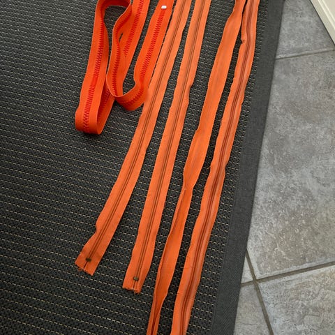 9 erilaista vetoketjua, kaikki päästä aukeavia ns. takkivetoketjuja ja kaksi niistä on kaksisuuntaisia. Pisin musta on n. 75 cm ja lyhin valkoinen n 45 cm. Osa on muovisia ja osa tukevia metallisia. Osa vähän käytettyjä ja osa uusia. Kaikki yht. 10 e