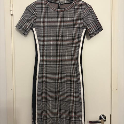 Hyväkuntoinen joustavaa ja pehmyttä materiaalia oleva H&M mekko. Takana vetoketju, koko 36, mitat kaikai 42 cm, olkahelma 85 cm ja hiha kainalosta 45 cm. Nouto Oulu tai postit lisätään.
