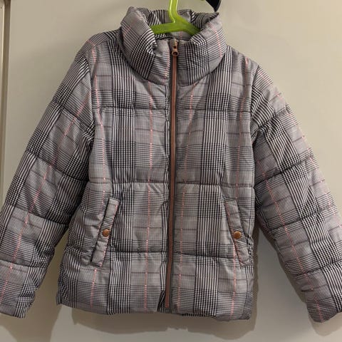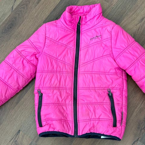 Tummansininen Name it toppatakki koossa 122. Huppu sisältä pinkki. Muuten hyvässä kunnossa, oikeassa hihassa pieni reikä, sen verran pieni ettei näy kuvassa.