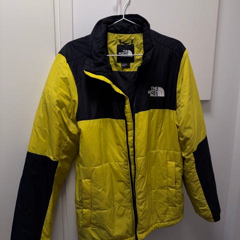 Miesten the north facen kaskettelutakki. Jonkin verran on käytön jälkiä, pieniä tahroja jotka eivät pesussa lähteneet. Hupussa yksi nappi rikki. Viat eivät vaikuta takin käyttöön. Ensimmäinen kuva vastaa hyvin takin väriä.
