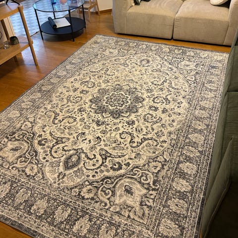 Mattoa ei ole pesty. Olen yhteen tahraan lisännyt tahranpoistoainetta ja sen jälkeen vaan hangannut mattoa, eli tuo tahra lähtisi varmaan paremmin/kokonaan pois pesemällä sillä on luultavasti vain jäämiä itse tahranpoistoaineesta.