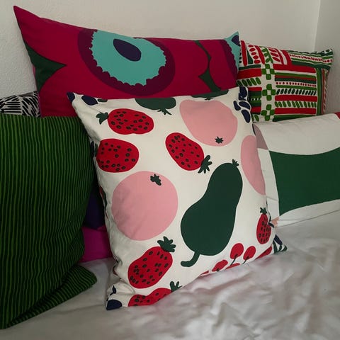 Hyväkuntoinen 100% puuvillaa oleva koristetyynynpäällinen. Mitat; hieman alle 40 cm x hieman alle 60 cm. Vetoketjullinen. Mieletäni kunto oikein hyvä.