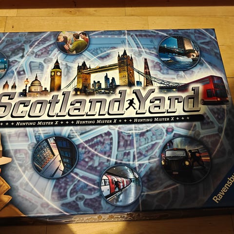 Ravensburger Ostosretki lautapeli. Tuskin kaikki osat ovat tallessa.