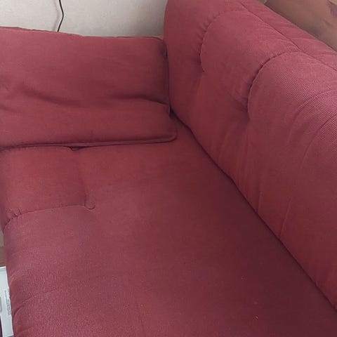 Annetaan ehjä ja käyttökelpoinen kahden istuttava vuodesohva suoraan käytöstä. Iällä jo, mutta kelvollinen edelleen. Mekanismi toimii ja sisällä on säilytystilaa vaikka peitoille ja tyynyille. Istumasyvyys 60cm, istumakorkeus 40cm. Ei eläimiä taloudessa. Haku Ulvilan keskustasta, ei kuljetusmahdollisuutta.