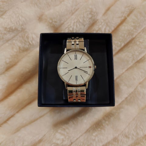Tommy Hilfiger Victoria upea , näyttävä naisten kello, teräs RUNKO ja kullatut osat, kellon halk. noin 4cm, rannen halk. noin 17.5 - 18cm, kunto erittäin hyvä, käytetty muutamasti, ostettu sokoksessa. TOIMII!