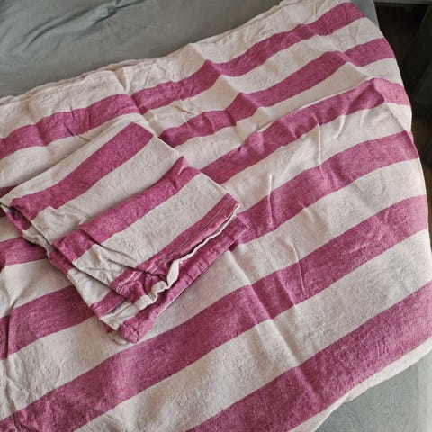 Pussilakana 150x210cm, tyynyliina 50x60cm, materiaali 100% pellava, käytetty pari kertaa, pesty oston sekä käytön jälkeen.