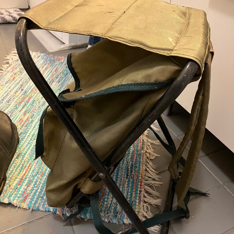Perinteinen ja tukeva metallinen pilkki-istuin, kansi styroksia, kantohihna ja mitat:kork.34 ja lev.25cm