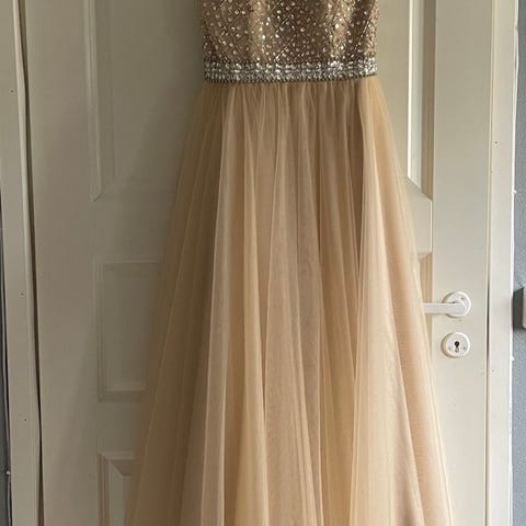Kaunis kultainen mekko. Tanssittu 2 kertaa ja helmassa joitain käytön jälkiä. Lisää kuvia saa ja hintaa voi tarjota🥰