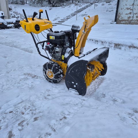 Hyväkuntoinen itsevetävä linko naru sekä sähkökäynnistys hyvä työvalo 6.5hp hyvin lumilentää
