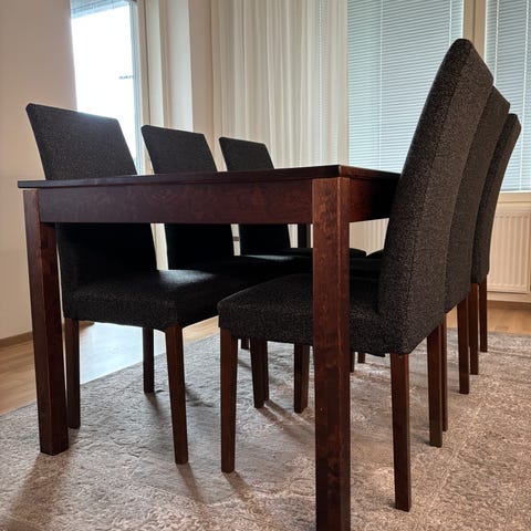 Myydään nopeimmalle tyylikäs ja tukeva 4 hengen ruokapöytä. Ajaton muotoilu sopii moneen sisustukseen ja pöytä on mukavan kokoinen arkeen.
