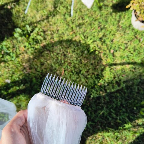 Ostettu hääkippikseltä, en tiedä onko minkään merkkinen. Hyvässä kunnossa, ei reikiä tai repeymiä mutta on ryppyinen. Kaikki helmet on paikallaan.