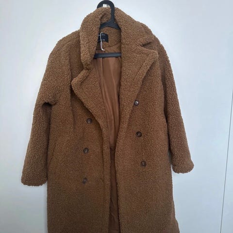 Teddykangas-nailonsekoitetoppatakki. Pieni huulipunatahra niskassa, tästä kuva. Materiaaleissa Polyesteria ja Polyamidia. Nouto Jyväskylän keskustasta.