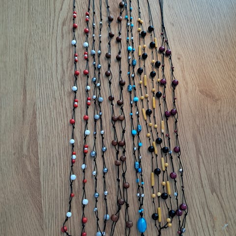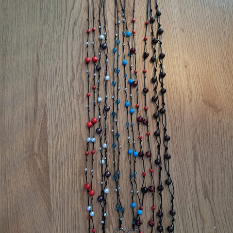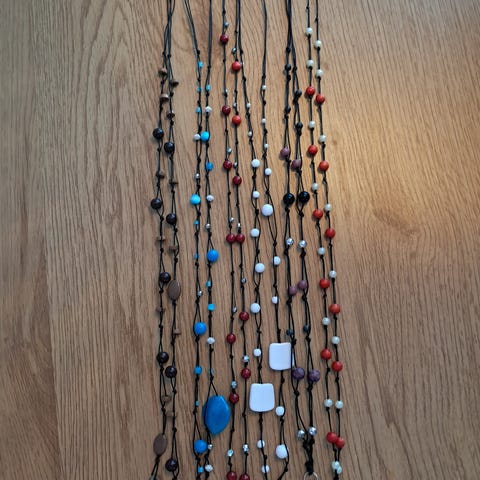 Uusia,käsityönä tehty tukevaan nauhaan.