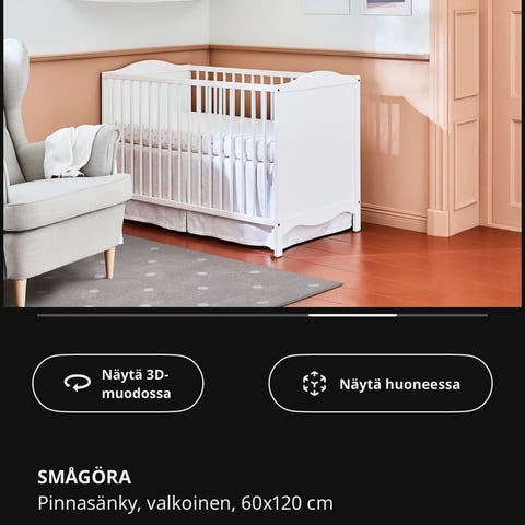 Myydään hyvässä kunnossa oleva pinnasänky jossa mukana myös turvalaita, patja ja laitapehmuste.