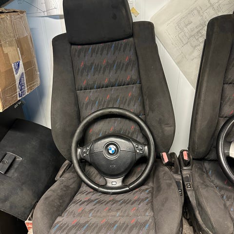 Kuvien siistikuntoinen uudelleen verhoiltu msport ratti. Verhoilun alla siisti orkkis nahka.