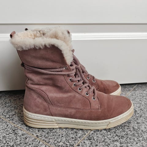 Vaaleat, mokkanahkaiset, kevyellä vuorella olevat nilkkurit. Koko 37,5 (4,5). Vain nouto. Kuvassa kengät näyttävät tummemmilta kuin mitä ovat.