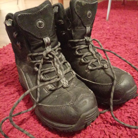 Merrell talvikengät, koko 43, musta väri. Intersportista joskus ostettu, en ole ihan varma onko nämä virallisesti talvikengät mutta aika paksun oloiset että näin oletan. Olleet satunnaisessa käytössä muutamilla syksyn vaelluksilla pojilla, kovassakin käytössä. Nämä kuitenkin yllättävän hyvässä kunnossa edelleen. Myydään koska jäi pieneksi nämäkin.