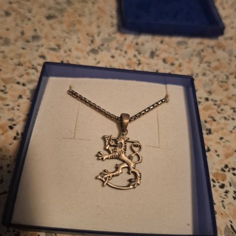 Myydään hopeinen suomileijona kaulakoru ketjulla