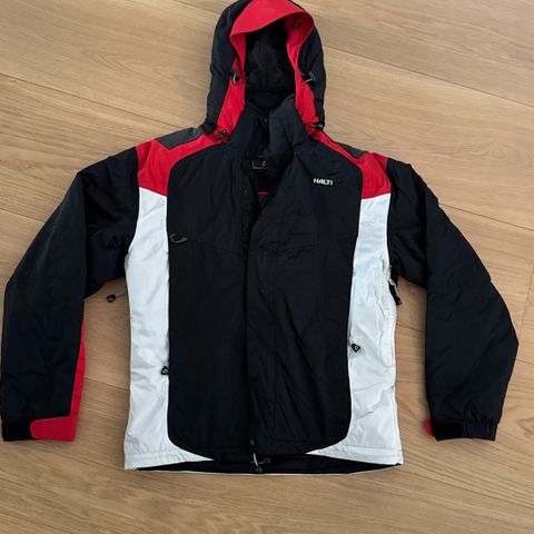 Ski industries merkkisen takki on tuulen- ja vedenpitävä ja kolmikerroksinen. Takissa on paljon taskuj, irroitettava huppu, edessä kaksisuuntainen vetoketju.