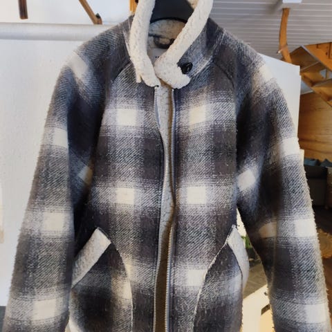 Takin koko on S, mutta itse käytän L koon vaatteita ja takki on minulle sopiva👍🏻 Povarin vetoketju on rikki, ja hihassa on pieni reikä. Kauluksen sisältä löytyy ohut huppu.