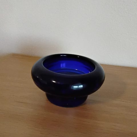 Upea Metallinen vintage kynttilänjalka sinisellä lasiosalla
