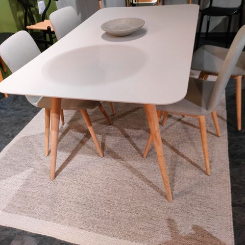 Liian iso nykyiseen keittiöön. Pöytälevy ollut kokoajan suojattu ja tuoleillakaan ei ole paljoa istuttu. Todella siisti kokonaisuus. Pöydän jalat saa helposti irti, joka helpottaa kuljetusta. Ostettu veke kalusteelta ovh 1773 €