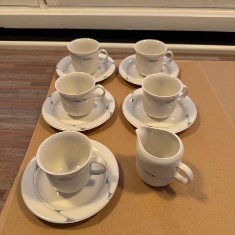 Arabia Arctica kahvikupit ja lautaset 14 kpl valkoinen
