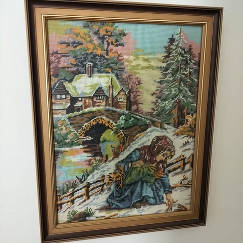 Kaksi joutsenta kanavatyö. Koko 43x70