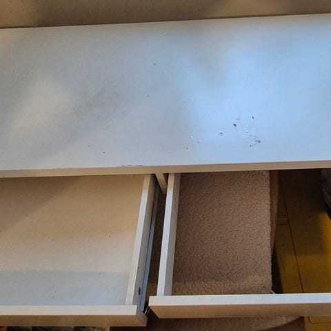 Kaapin ovi tarvitse uuden saranan. Laatikot toimivat. Hyvä työpöytä esim autotalliin. KATSO mitat ikean sivuilta.