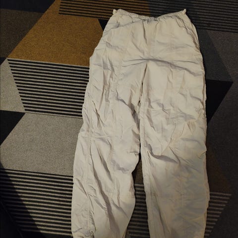 Lindexin beiget leveälahkeiset reisitaskuhousut / farkut. Koko 170 cm (pienehkö koko). Joustaa vähän.