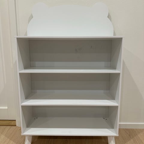Siistissä kunnossa oleva lasten kirjahylly. Hyllyssä on neljä pehmeästä kankaasta valmistettua lokeroa. Hyvin vakaa eikä pääse kaatumaan helposti. Mitat: korkeus 71cm, syvyys 30cm, leveys 63,5cm.