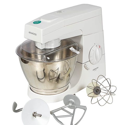 Vintage Kenwood Chef keittiökone oranssissa värissä. Sisältää kulhon ja erilaisia lisäosia, kuten vispilän ja tehosekoittimen. Käytettävissä monipuoliseen ruoanlaittoon ja leivontaan.