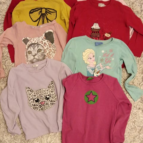Hei, nyt myydään halvalla laaja valikoima hyvänkuntoisia tyttöjen vaatteita koossa 110-116. T-paitojen hinta yksittäin on 3eur, jos muuta ei mainita. Kun ostaa pakettina vähintään 4 kpl, hinta per paita on 2eur. Kaikki vaatteet ovat pesty myyntiä varten. Katso muut ilmoitukseni, esim saman koon pitkähihaisista paidoista ja hihattomista paidoista, niin yhdistetään vaatteet samaan pakettiin
