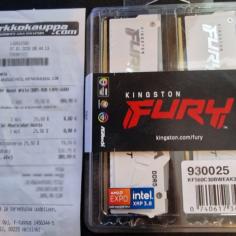 Myydään Kingston Fury DDR5 6000MHZ CL36 2x8GB. Kuljetus Tampereen alueella mahdollisuuksien mukaan.