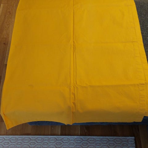 Annetaan vaaleanruskea 100 % puuvillainen poppanaliina. Liinassa steariinitahra, jota en ole yrittänyt poistaa. Muutoin puhdas ja tahraton. Merkki Fabindia.