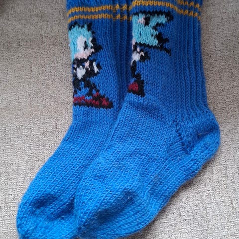 Sonic -fanille neulesukat. Koko n. 31-33.