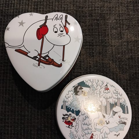 Hakusanoja: Muumi, muumimuki, Moomin, peltipurkki, tähtisäilytysrasia, martinex, tarrallinen, lumihiutale, sininen, muumikulho, Muumi rasia, star, Muumipeikko.