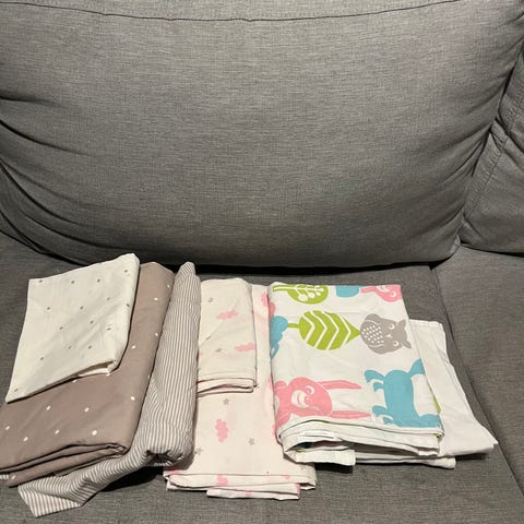 Myydään siistikuntoiset petivaatteet vauvalle, tai sanotaan 0-2-vuotiaalle, pussilakana ja tyynyliina.