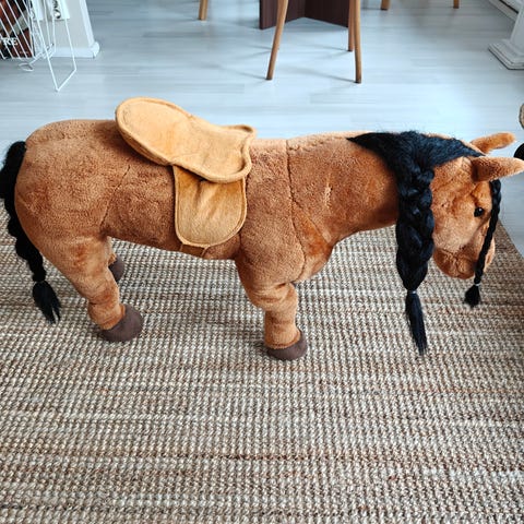 Laadukas, puinen hevonen leikkeihin tai ratsastusharjoitteluun. Säkäkorkeus n. 90cm!