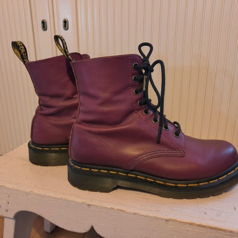 Dr. Martensin mustat Chelsea-nilkkurit. Käytön jäljet näkyy kuvissa. Ulkopuoli perussiistissä kunnossa. Sisäpuolella enemmän kulumaa: kantoihin laitettu korjauspaikat, pohjallisessa kulumaa. Itsellä ei jaloissa pitäessä tunnu epämukavia kohtia, mutta jonkun toisen ihmisen jalat tietenkin muotoutuvat kenkään eri tavalla. Kengät edelleen pitävät kosteutta, eli pohjista ja saumoista ehjät. Sisäpituus 24,5cm