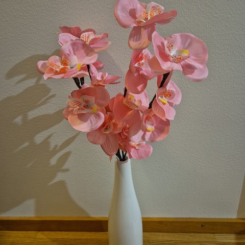 Myydään tekokukka maljakossa. Korkeus n. 86cm ja leveys n. 70cm. Leveyttä pystyy muokkaa kukkia haluamalla tavalla.