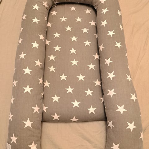 Hyvä kuntoinen Emma vauvapesä. Vaalean harmaa tähdillä. Unipesä.
