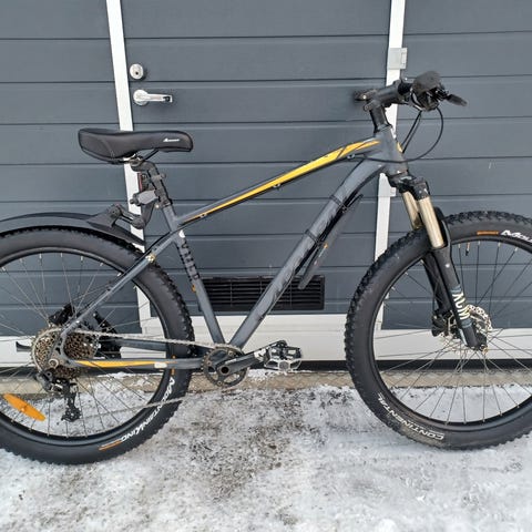 Huollettu 21-vaihteinen maastopyörä. Alumiinirunko. Tehokkaat hydrauliset levyjarrut. Joustokeula. Uudet ketjut, kasetti, takavaihteen valitsin+vaijeri, gripit, jalustin ja ulkokumi takavanteeseen. Renkaat 29". Runkokoko 42 cm (suositus yli 165 cm pituisille).